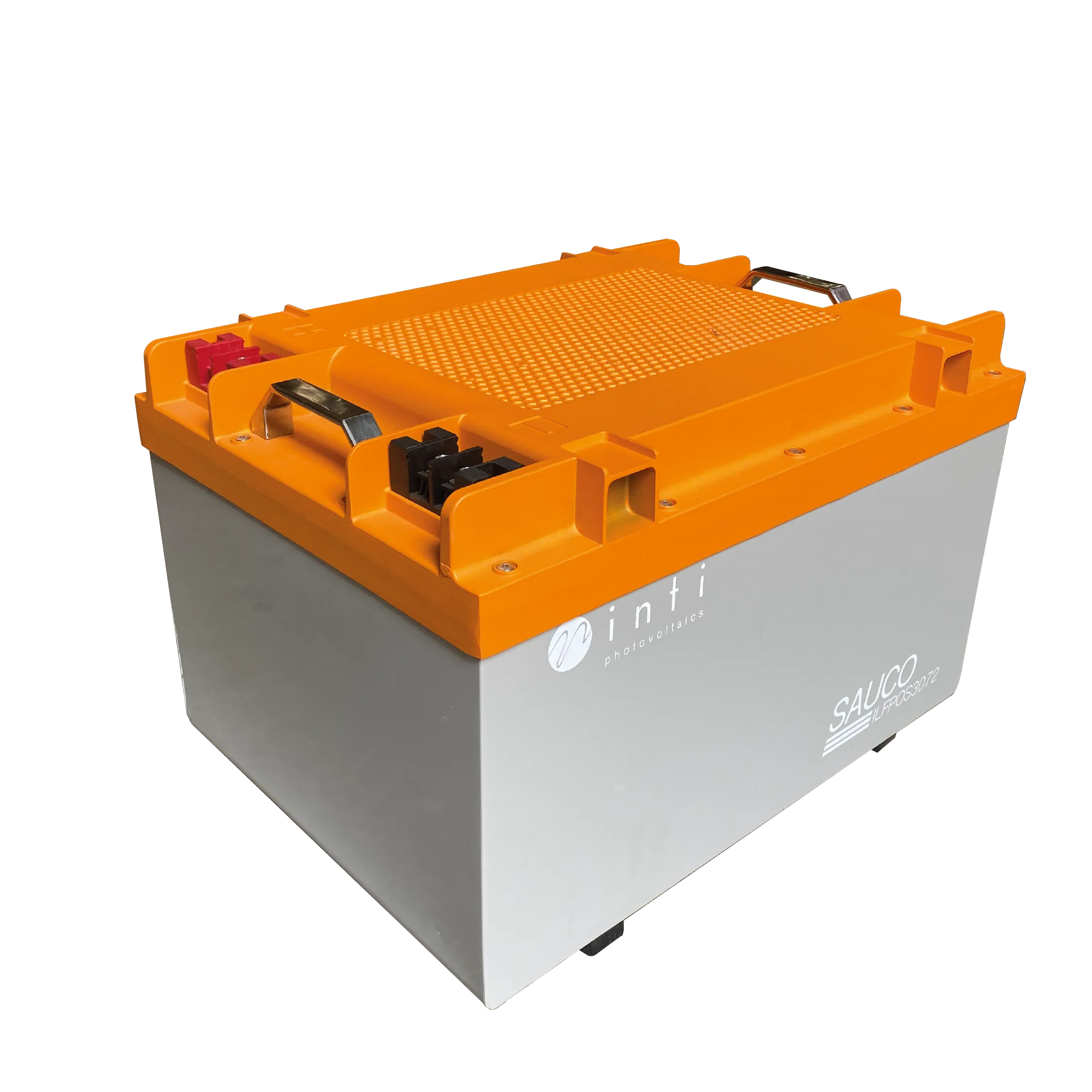 La batería Sauco de Inti es una batería Ión Litio libre de mantenimiento LiFePO4 con un rango diverso de capacidades nominales a 25,6Vdc y con una vida útil de ≥ 4.000 ciclos a un 80% DOD y 25ºC. El sistema customizado de carga de la batería con BMS inteligente integrado con protección de temperatura permite extender la vida útil de la batería.